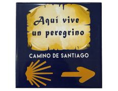 Azulejo Aquí Vive un Peregrino 15x15