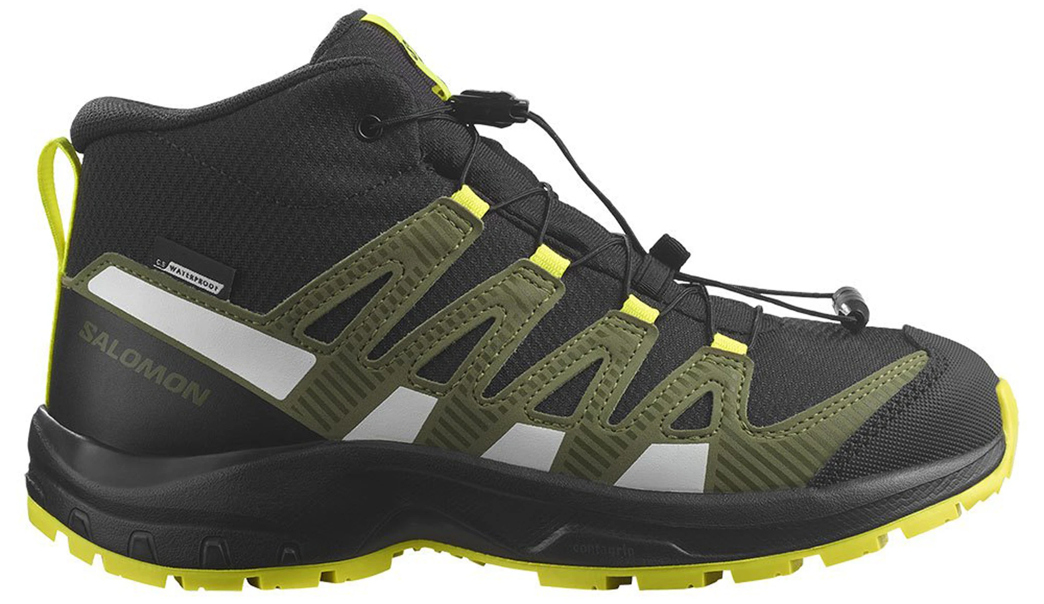 Las Xa Pro v8 Mid CSWP J cuentan con membrana impermeable y transpirable ClimaSalomon Waterproof que garantiza que los pies de los más jóvenes permanezcan secos en condiciones de humedad, manteniendo un alto grado de confort en todo tipo de circunstancia.