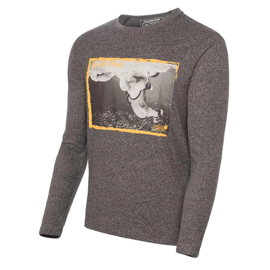 Camiseta de manga larga para hombre indicada para escalada, alpinismo, senderismo y trekking, Con tratamiento Carbon Finish, printing de escalada y confeccionada en tejido Algodón-Poliéster.