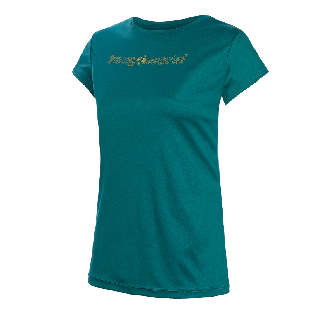Camiseta de mujer en POLIESTER + POLYGIENE, con cuello redondo, manga corta y manga senatda. Suave, higiénica, fácil de mantener y con tratamiento anti-olor y efecto anti-microbios.