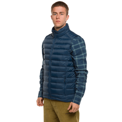 iva incl.Chaleco técnico de hombre confecionado en POLYESTER DOWNPROOF, con relleno de pluma de pato 90/10 600 CUINS para uso como segunda capa en actividades invernales.