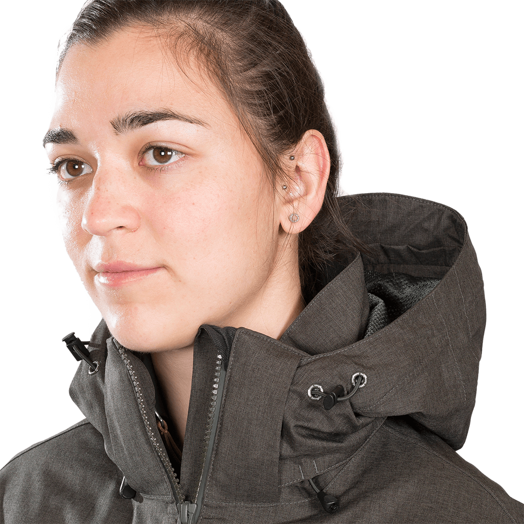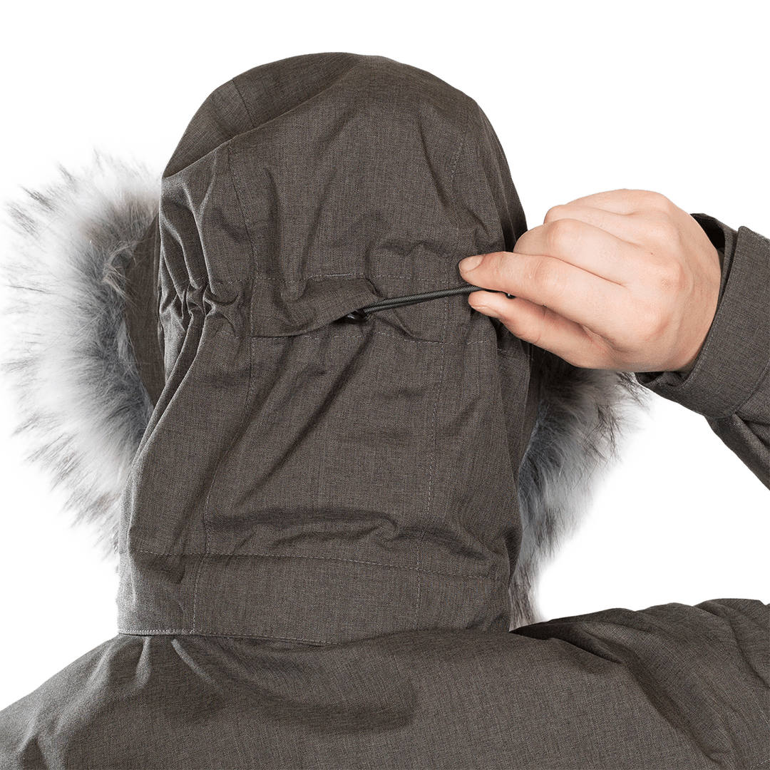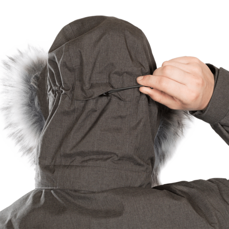 - Doble ceñidor facial y volumen en capucha.