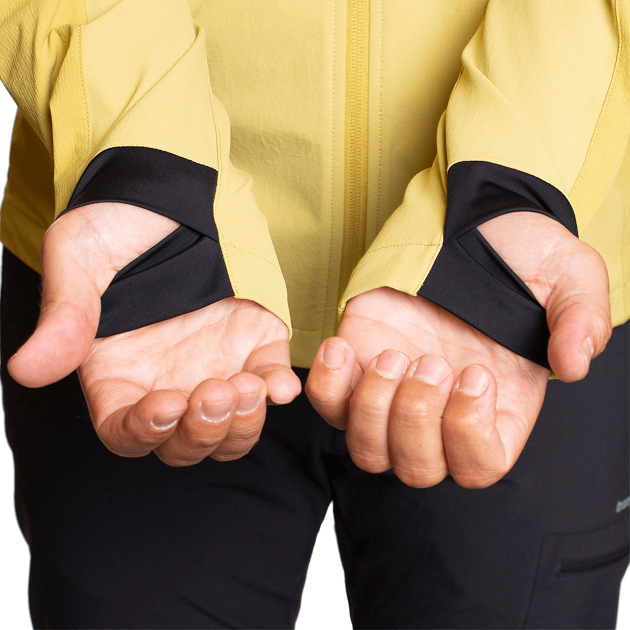Puño interior de tejido elástico con salida para el pulgar.