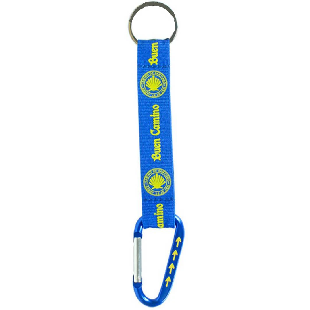 Llavero con cinta y mosquetón Buen Camino azul