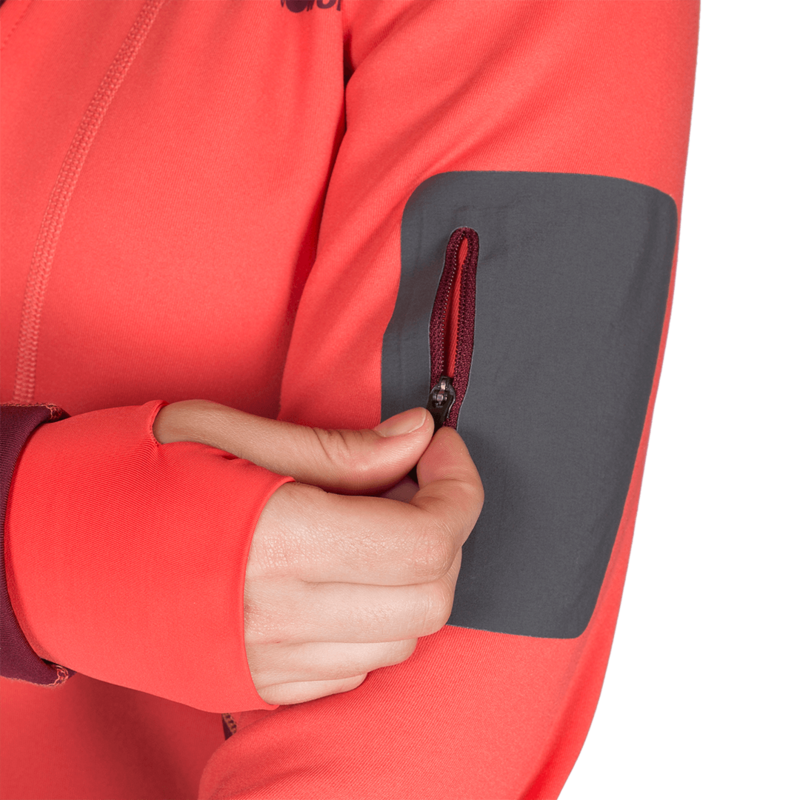 - Bolsillo en manga con cremallera.
