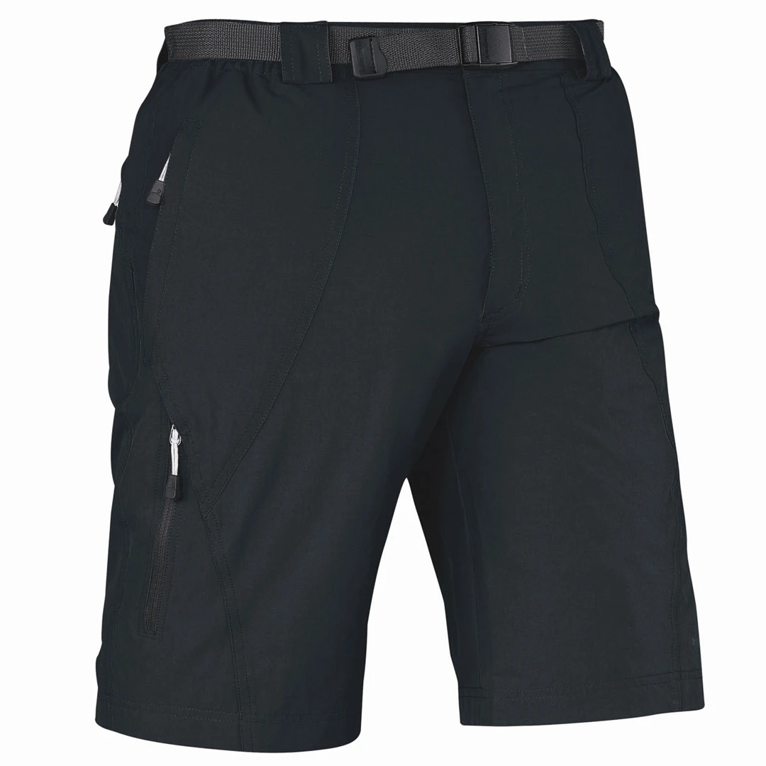 Short de hombre de POLIAMIDA elástica, con cinturón y cintura elástica. Dos bolsillos frontales, uno en pernera y dos traseros todos ellos con cierre de cremallera. Ligero y de rápido secado.